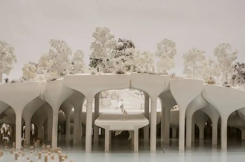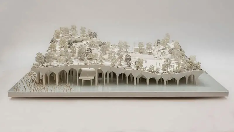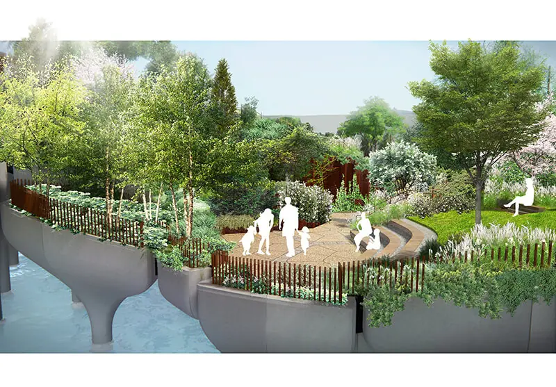 We wondered if the identity of our new park and performance space could emerge from the water, just like these structural piles, but without needing to add any slab on top. This idea evolved to take the new concrete piles that would be needed to connect to the granite at the base of the river, and to then continue them out of the water, extending skyward to raise sections of a generous green landscape with rich horticulture. Fusing as they meet, these 280 individual piles come together to form the undulating topography of the park, angled perfectly for performance and theatre spaces. Once complete and open to the public in 2021 the result should be a unique and thrilling landscape over the water for everyone to enjoy.”