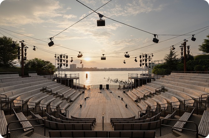 Diller called on the expertise of industry leaders in the arts—Scott Rudin, Stephen Daldry, George C. Wolfe, and Kate Horton—to explore the vast possibilities of creating a new public park with the arts as an integrated component. This team, together with Hudson River Park, selected the design firms of Heatherwick Studio and MNLA to realize this vision. The two firms combined architectural innovation with a captivating landscape to provide visitors with an oasis from urban life where they could play, relax, imagine, and restore.